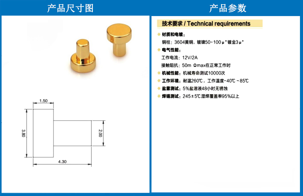 產品型號:3.8*4.3銅柱
